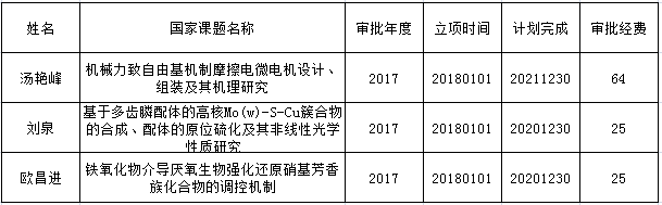 2017年度我院喜获三项国家自然科学基金项目