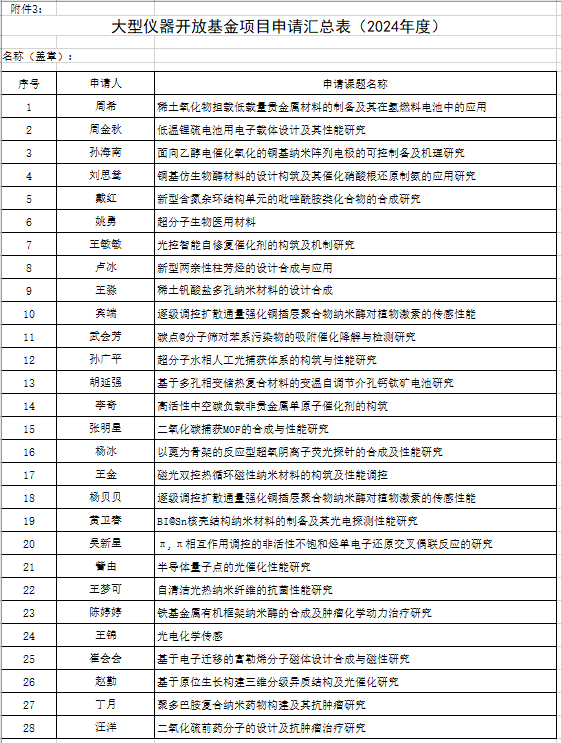 经英国365公司学术委员会评审,学院2024大型仪器开放基金项目申报排名公示,