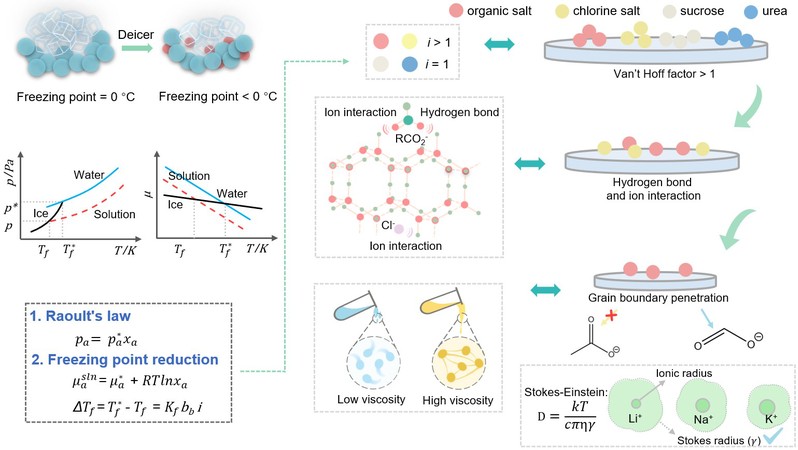 可充电水系锌金属电池因其资源丰富、安全性高和成本低等优点,成为新一代大规模储能系统的重要候选。然而,在极端低温(如深海或外太空)环境下,电解液容易结冰,严重限制其工作性能和应用前景。传统的抗冻策略往往侧重于冷却过程中的结冰行为,忽视了“冰如何融化”这一关键过程。本研究提出以冰的融化动力学为核心的电解液设计逻辑,定义三大关键筛选指标:理论冰点降低程度、化学物质与冰表面水分子的相互作用强度以及对冰晶格的晶界渗透效率,为抗冻电解液提供了理论依据和量化标准。在这一理论的指导下,将甲酸钾作为电解液添加剂,显著提升了水系电解液的低温性能,使得全电池能够在-40°C下实现超过1000次的稳定循环,且软包电池(正极载量为7.5 mg cm⁻²)在-40°C下展现出110 mAh g⁻¹的高比容量。这一成果为开发更可靠的低温电解液提供了新的视角,丰富了低温电化学系统的设计理念。