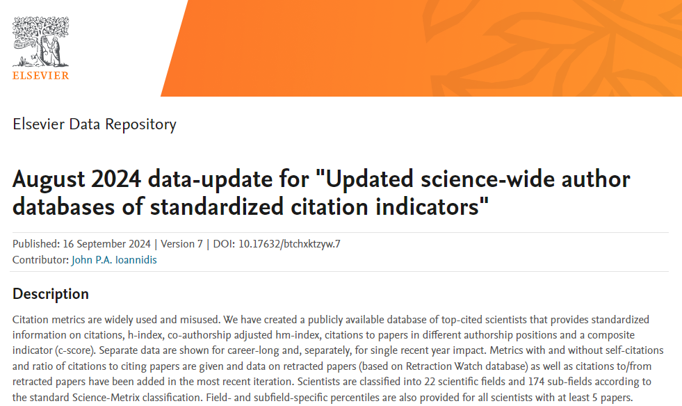 榜单链接:https://elsevier.digitalcommonsdata.com/datasets/btchxktzyw/7