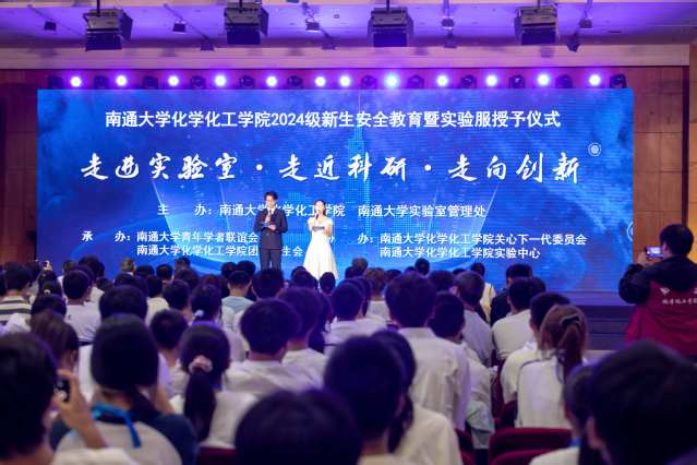 10月19日下午,我院“走进实验室·走近科研·走向创新”2024级新生安全教育暨实验服授予仪式大学生活动中心成功举行。活动由学院、实验室管理处和青年学者联谊会联合举办,南通大学党委研究生工作部、学生工作部(学生工作处)、校团委、科学技术处、国有资产管理处(实验室管理处)等职能部门领导,校青年学者联谊会教师代表以及兄弟学院实验中心主任应邀参加活动。