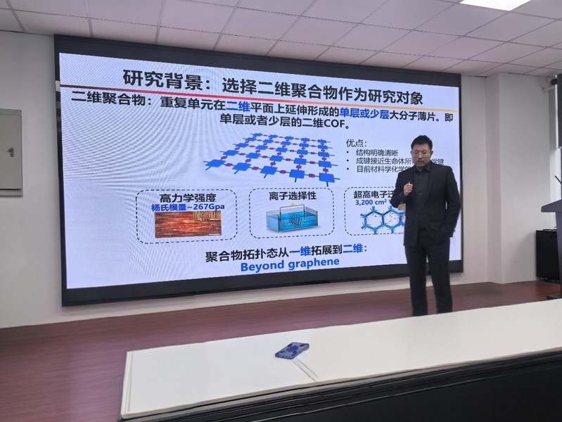 2024年12月9日下午,应365英国上市集团科学技术处和英国365公司邀请,苏州大学功能纳米与软物质研究院教授,博士生导师刘珂君来我院进行学术交流,并在纺化楼C719会议室做题为水面化学合成二维聚合物的学术报告。本会议由黄强老师主持,学院部分青年教师代表及全体研究生参加此次报告。