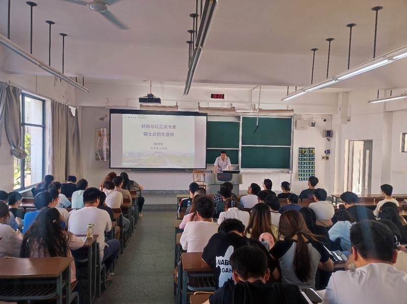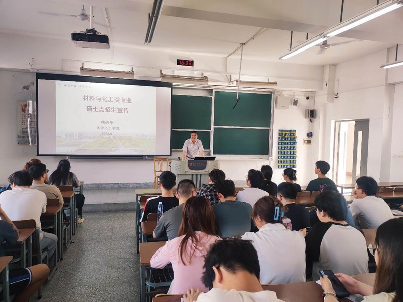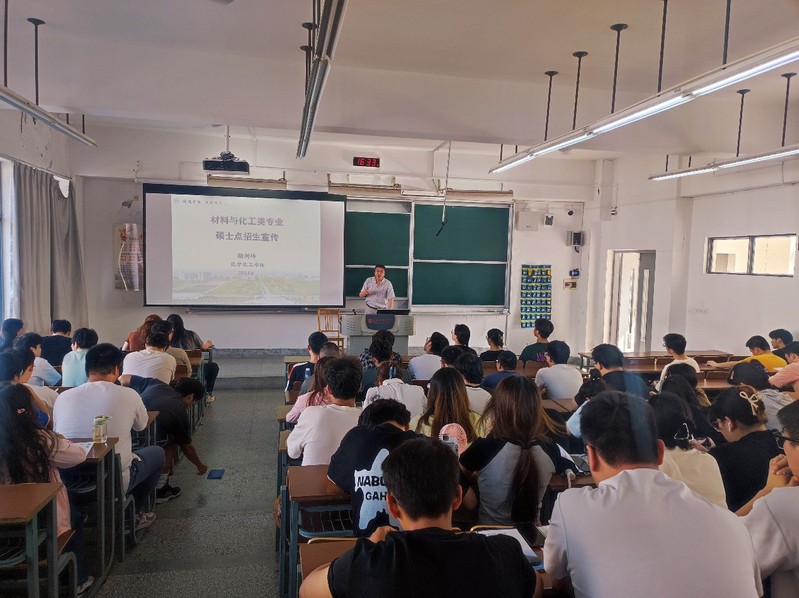 盐城师范学院化学与环境工程学院现设有化学(师范)、应用化学、储能科学与工程、环境科学和环境工程5个本科专业,相关专业是我院化学(学硕)、材料与化工(专硕)硕士点重要生源,在招生宣传期间,戴红副院长、鞠剑峰教授、王艳青副教授分别介绍了我院硕士点专业的师资力量、科研能力、毕业生成果及毕业去向,并针对学生关心的考研问题进行了逐一回应。