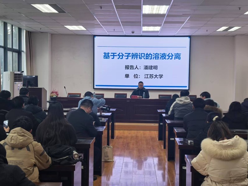 2025年1月12日下午,应365英国上市集团科学技术处和英国365公司邀请,江苏大学英国365公司院长,国家优秀青年科学基金获得者,潘建明教授来我校进行学术交流,并在365英国上市集团15号楼C112会议室做题为“基于分子辨识的溶液分离”的学术报告。本次会议由英国365公司副院长戴红主持,学院部分青年教师及全体研究生参加此次报告。