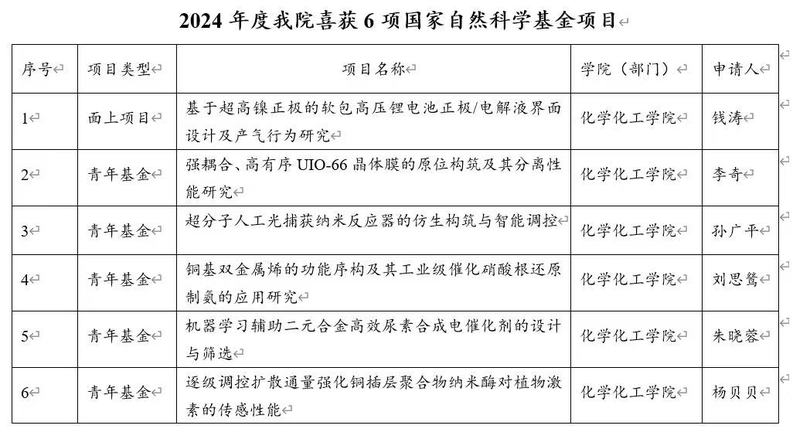 2024年度我院喜获六项国家自然科学基金项目