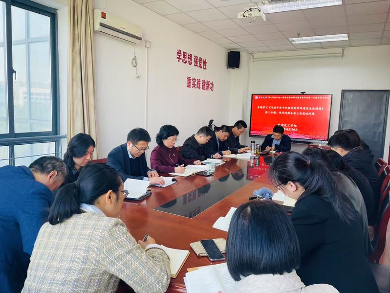副院长戴红领学《习近平关于加强党的作风建设论述摘编》第二专题:作风问题本质上是党性问题,并对学习心得进行分享交流。会上交流环节中,葛云、袁小磊两位老师分别结合各自工作内容,交流了学习收获。大家表示,学院党员都要深入学习领会党的作风建设的重要论述,在教书育人的日常工作中更要身体力行落实中央八项规定精神,推进作风建设常态化长效化,以优良作风凝心聚力、干事创业。