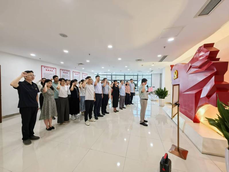 之后,院党委副书记、副院长钱涛带领全体党员做重温入党誓词仪式,钱涛希望党员同志们以誓词为镜,筑牢政治忠诚:树牢“四个意识”、坚定“四个自信”、做到“两个维护”。