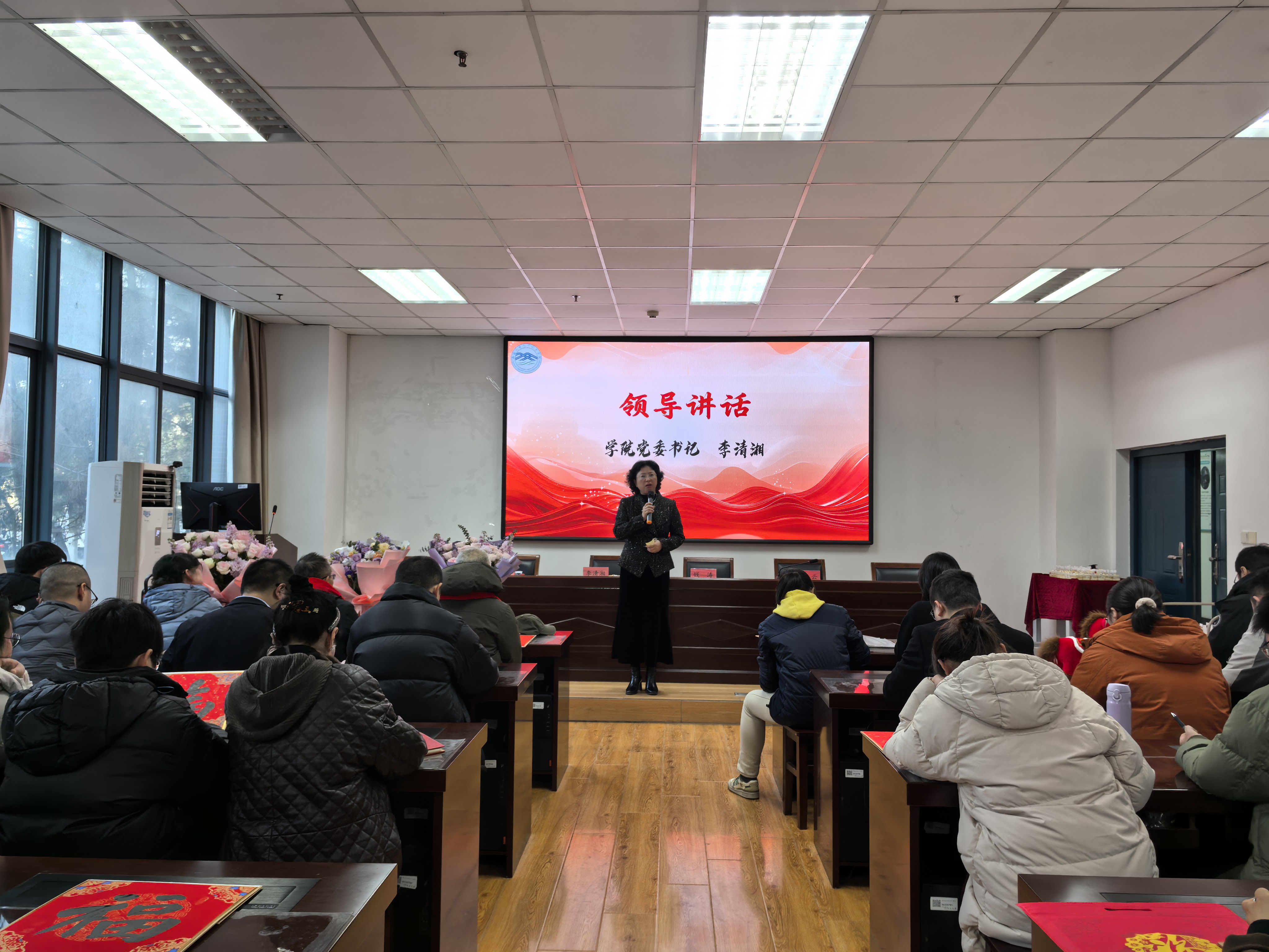 最后,学院党委书记李清湘作总结讲话。她代表学院党政领导班子,向辛勤耕耘的全院教师致以衷心感谢,对取得突出成绩的教师表示祝贺,对积极进取、勇于创新的教职工给予鼓励。李书记强调,本次大会既是对过去一年工作的系统总结,也是凝聚共识、振奋精神、迈向新征程的重要节点,新的一年,希望全院教师继续发挥优势、补齐短板,强化争先意识,提升工作效能,共同谱写高质量发展新篇章。(张军)